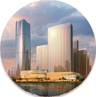 未來城市形象中心的超級商貿綜合體。城市黃金商務圈, FBD里的第一高樓。 由美國RTXL設計公司,同濟大學建筑設計研究院, 泛亞國際景觀設計公司聯合設計,包括五星級酒店,商務寫字樓,商業, 住宅以及空中花園等多種業態,是一個復合型多元化的商業綜合體。